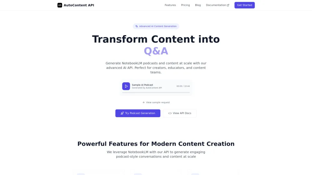 AutoContent API 是一个先进的人工智能驱动平台,可以从多种来源(包括网站、文本和 YouTube 视频)创建播客和音频内容。它提供了一个完整的自动播客制作解决方案,支持多种语言,能够生成多种声音,并提供自定义声音创建选项。该平台专为寻求高效和多功能音频内容生成的专业内容创作者量身定制。