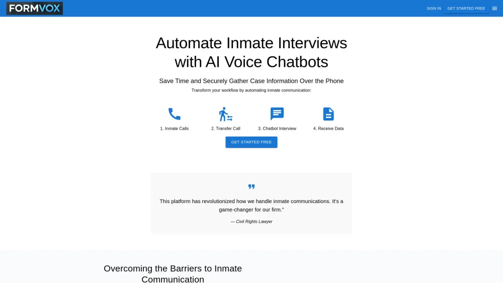 FormVox is an innovative platform that streamlines the process of completing intake forms and surveys through a voice chatbot. This technology enables job applicants and clients to verbally provide their responses over the phone, thereby removing the necessity for lengthy forms and tedious interviews. Users have the option to directly dial into the system or be transferred to the voice chatbot for a seamless experience.