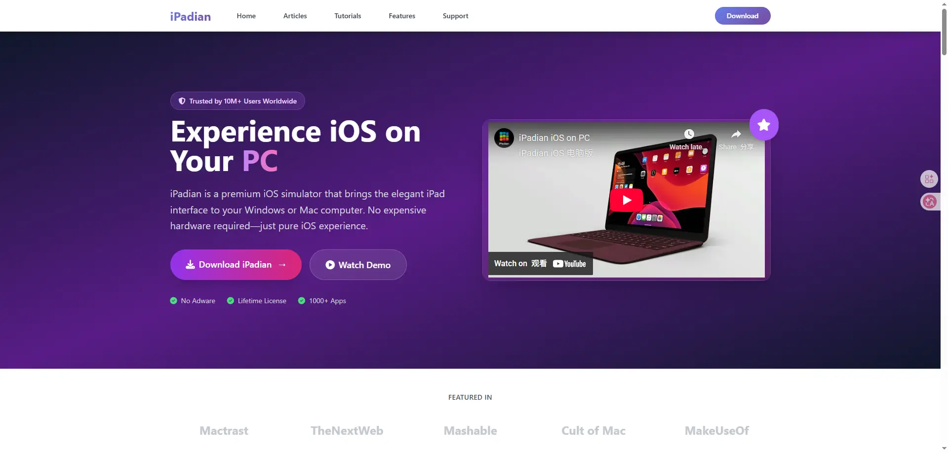 iPadian是该领域最知名的工具之一。它能让你的桌面呈现类iOS外观,这也是许多普通用户在寻找PC端iOS模拟器时首先尝试它的原因。但其官方网站明确说明它是一款模拟器(simulator),而非仿真器(emulator),同时还指出用户无法安装.ipa文件或使用真实的苹果应用商店。因此,它更适合用来体验简单的iOS风格,而非真正运行iPhone应用。