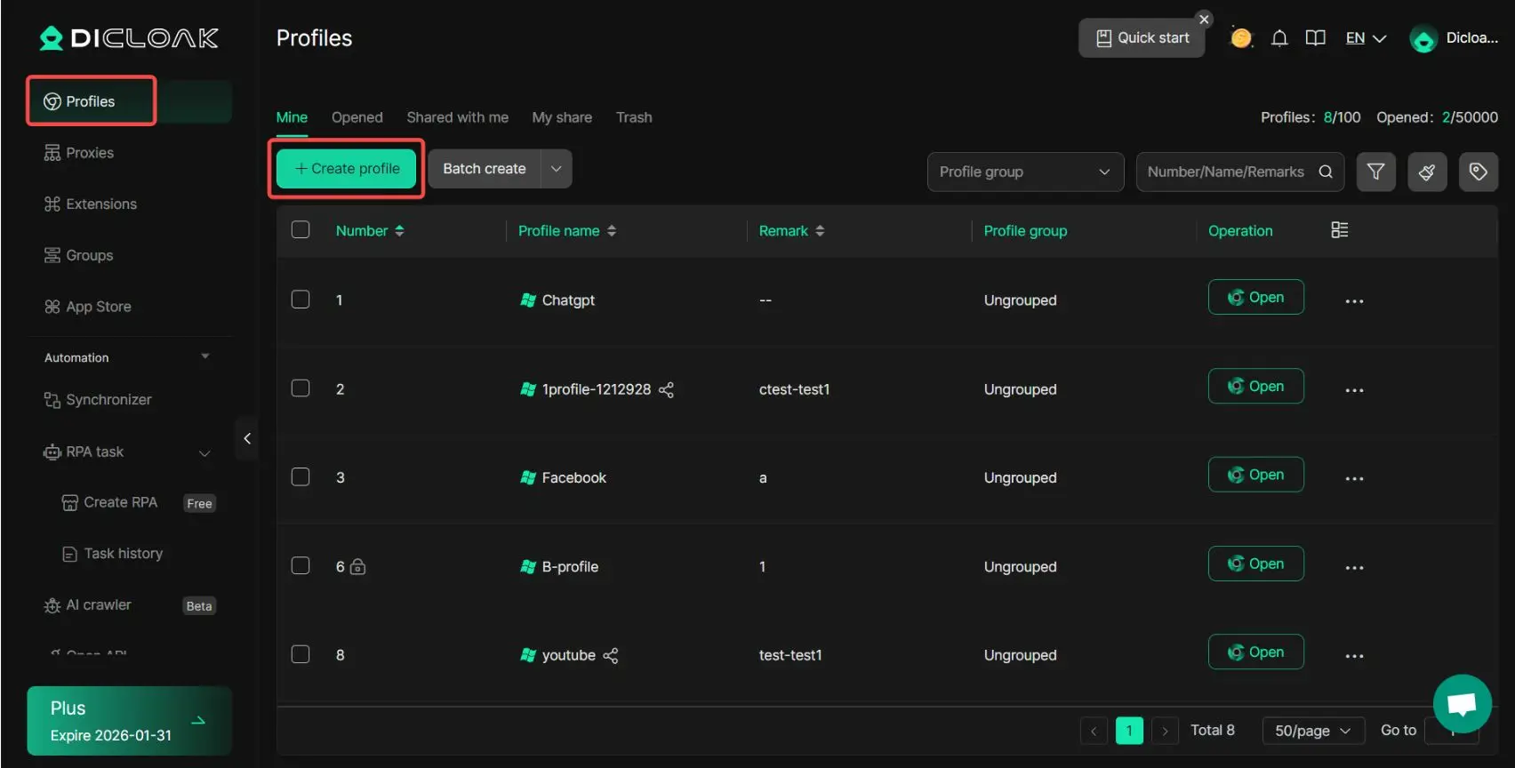 通过这种方式,你的浏览器访问权限会更有条理。你无需用一个杂乱的浏览器处理所有事务,只需按照DICloak官方指南中概述的创建流程,为对应任务打开合适的操作环境即可。