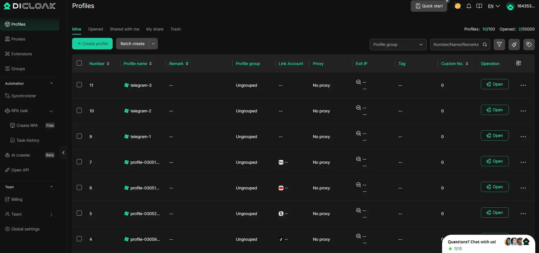 更简洁的方法是采用基于环境的工作流程。通过DICloak,你可以创建多个相互隔离的浏览器环境,从而在同一设备上独立运行不同的Telegram网页版会话。这让你能够更轻松地并行查看大量频道,且不会出现会话混淆的情况。
