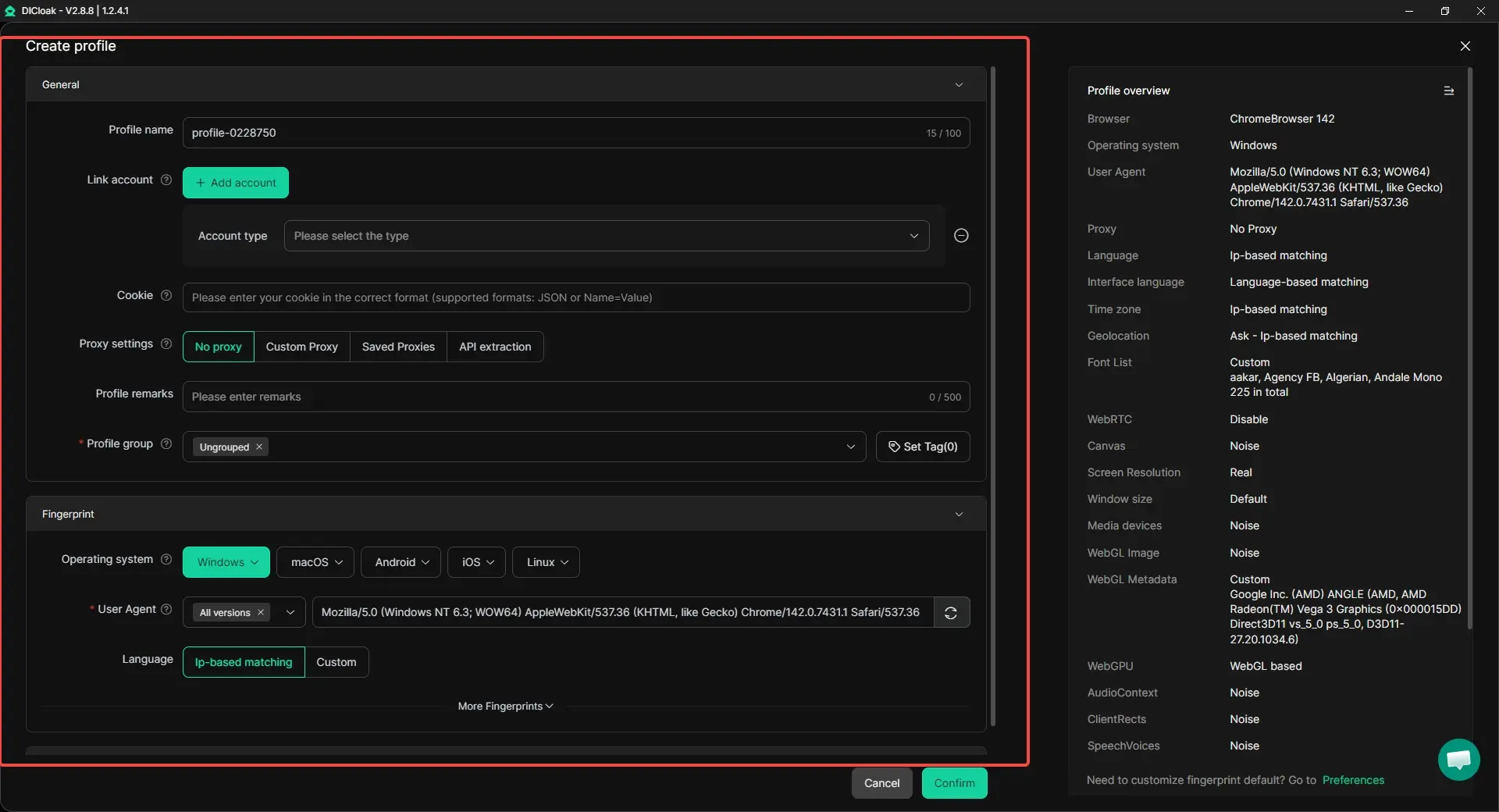 管理多个Snapchat账号时,浏览器环境往往会产生关联,进而引发验证问题或突发的访问限制。通过DICloak,用户可为每个Snapchat账号创建独立的浏览器环境。每个环境都在独立环境中运行,拥有独立设置,能确保账号相互隔离,降低账号间的关联风险。
