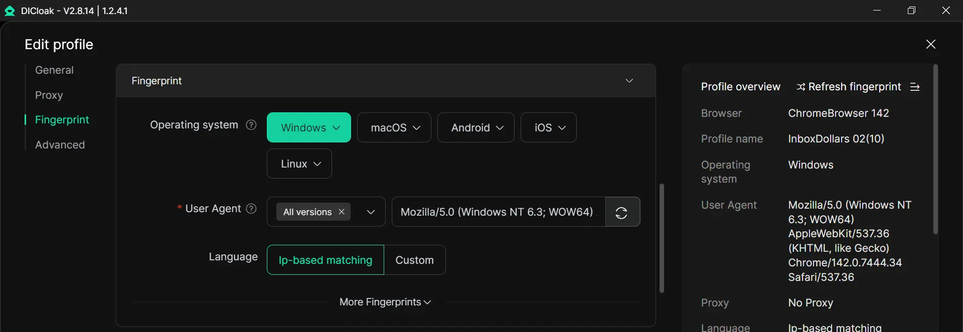 DICloak这类专业工具可让用户为每个账号创建一个受保护指纹。通过篡改硬件和软件参数,从业者能让平台将每个账号识别为使用独立设备的完全不同用户。