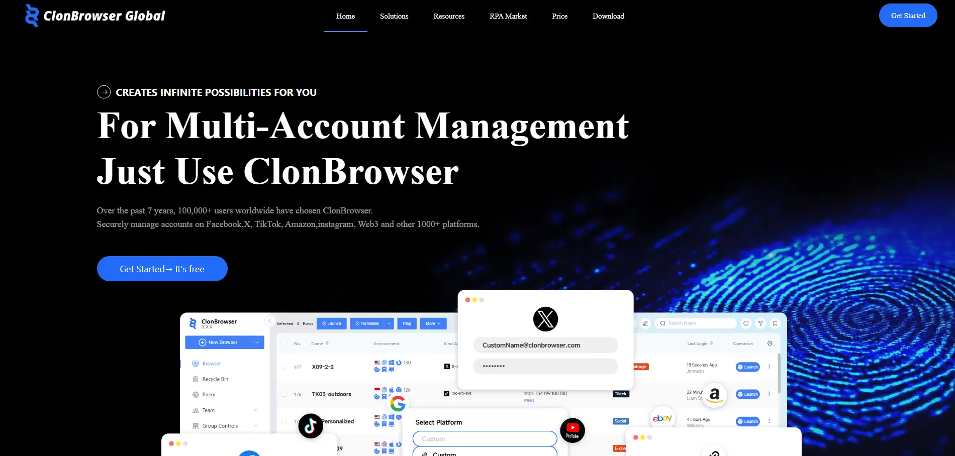 克隆浏览器(ClonBrowser)是另一款专为多账号管理打造的指纹浏览器产品。它虽不属于虚拟浏览器,但具备部分类虚拟浏览器功能,可用于管理隔离环境并跨环境协同工作,还拥有“群组控制同步器”和RPA自动化等功能。