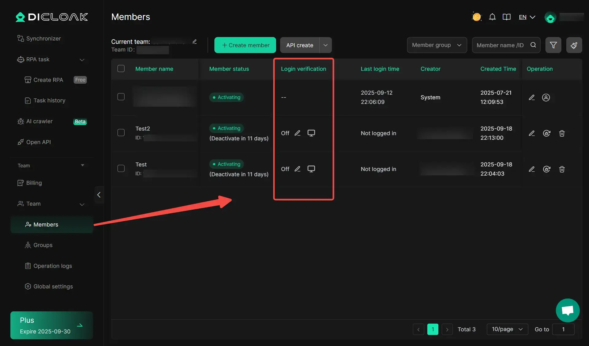 共享账号的一大痛点是缺乏管控——一旦授予访问权限,就很难限制他人的操作范围。DICloak通过内置的团队协作与权限管理功能解决了这一问题。