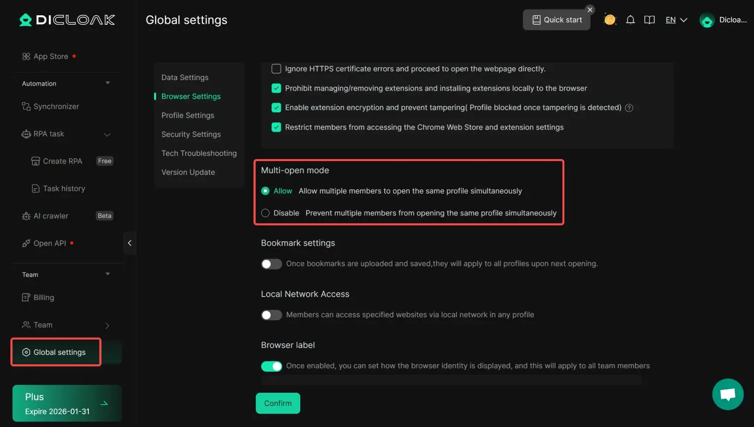 另一个常见问题是混合访问。一个账户可能由不同的人、在不同地点或通过大量不同设备环境登录。长此以往,会导致账户活动记录的稳定性降低。DICloak在此场景下十分实用,因为它专为账户隔离与团队协作打造。它能让团队以更可控的方式管理共享账户访问权限,而非随意传递登录信息。当有多人需要访问账户时,这有助于减少混乱的登录模式、重复的二次验证以及账户使用混淆问题。