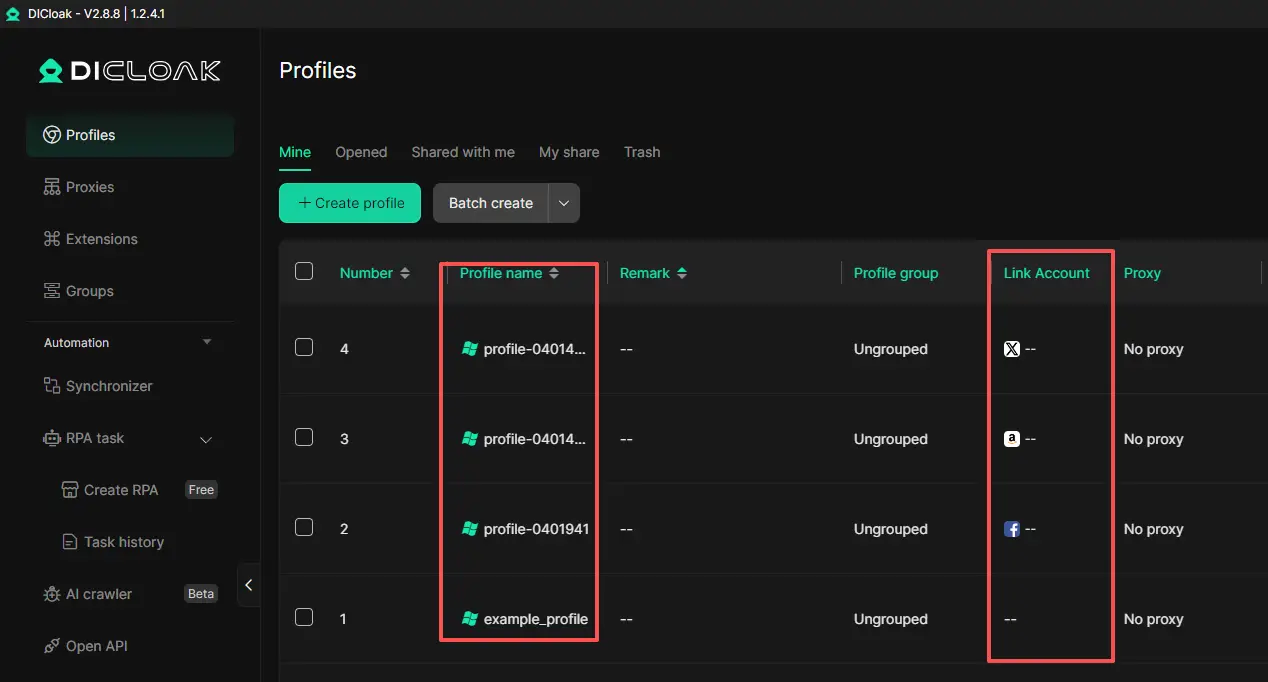 降低与环境相关的关注风险的一个实用方法是,为每个Instagram账号单独配置浏览器环境。借助DICloak,每个环境都可以独立存在,无需共享Cookie、登录会话和浏览器环境。当一个人在同一台电脑上管理个人账号、工作账号和测试账号时,这一点尤为重要。如果所有账号都在同一个普通浏览器中运行,行为信号更容易混杂。独立的环境设置更清晰,也更易于管控。