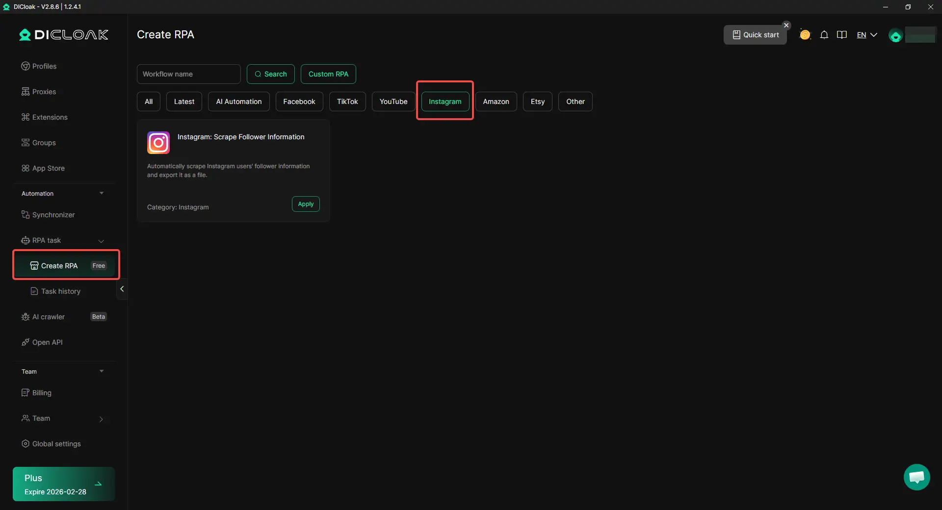 即刻访问DICloak官网,开启你的免费方案,拓展业务的同时无需再担心被Instagram封号。